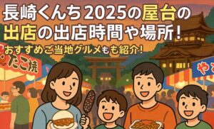 この記事では、長崎くんち2025の屋台(露店)の出店場所や営業時間は何時までなのか、絶対に食べたいおすすめ食べ物グルメを詳しく紹介します。