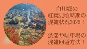 2025年の白川郷紅葉シーズンにおける混雑ピークの時期、避けるべき時間帯、アクセスの裏ワザ、駐車場の穴場情報などを分かりやすく解説します。