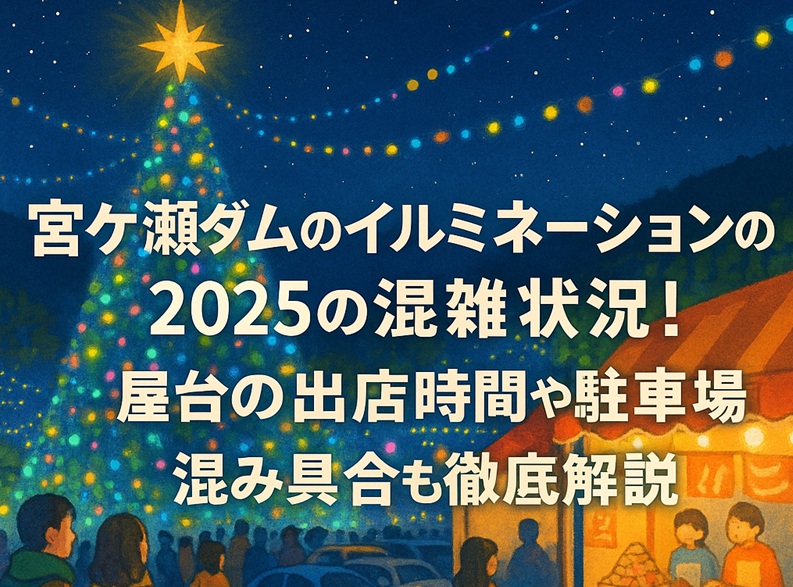 宮ケ瀬ダムのイルミネーション2025「宮ケ瀬クリスマスみんなのつどい」は、毎年多くの人で賑わう神奈川県の冬の人気イベントです。 高さ約30mの巨大クリスマスツリーやダム全体を彩る美しい光の演出が見どころですが、混雑が予想される時期や時間帯に行くと、駐車場や観覧場所の確保が難しくなることも。 この記事では、混雑状況や点灯時間、そしてゆったりと楽しむための混雑回避方法や屋台情報・駐車場まで、訪問前に知っておきたいポイントを詳しく解説します。 【宮ケ瀬ダムのイルミネーション2025の基本情報... -